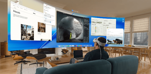 La tasa de refresco también sube hasta 120Hz, reduciendo el desenfoque de movimiento al mirar el entorno físico o usar la función Mac Virtual Display. Y con el chip R1, el visor procesa datos de 12 cámaras, 5 sensores y 6 micrófonos en solo 12 milisegundos, creando una vista en tiempo real del mundo.