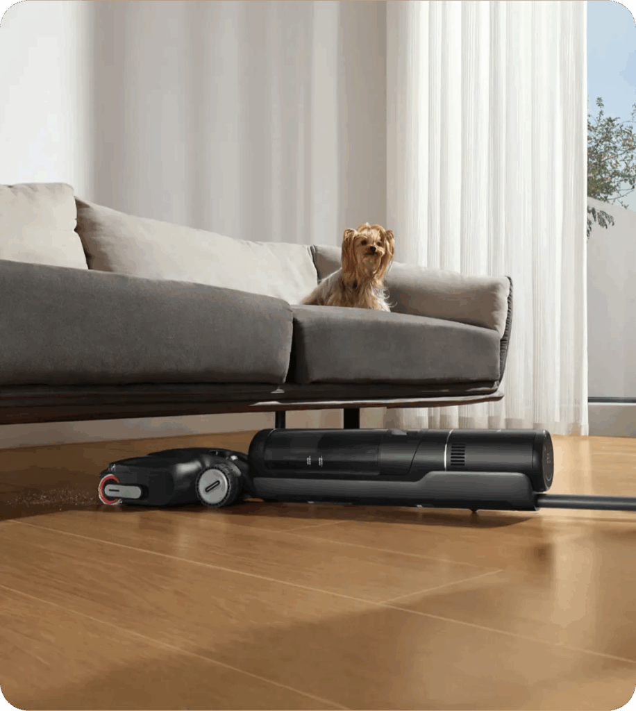 Uno de los secretos de su éxito está en su diseño. El sistema FlexReach ofrece un ángulo plano de 180°, inspirado en un diseño biomimético que se adapta al suelo y se desliza fácilmente bajo camas o muebles con una altura mínima de 14 cm. Su eje giratorio y la rueda omnidireccional trasera hacen que la experiencia de uso sea fluida, sin rayones ni marcas en las superficies. Todo en este modelo está pensado para moverse con libertad y alcanzar rincones donde otras aspiradoras simplemente no pueden.