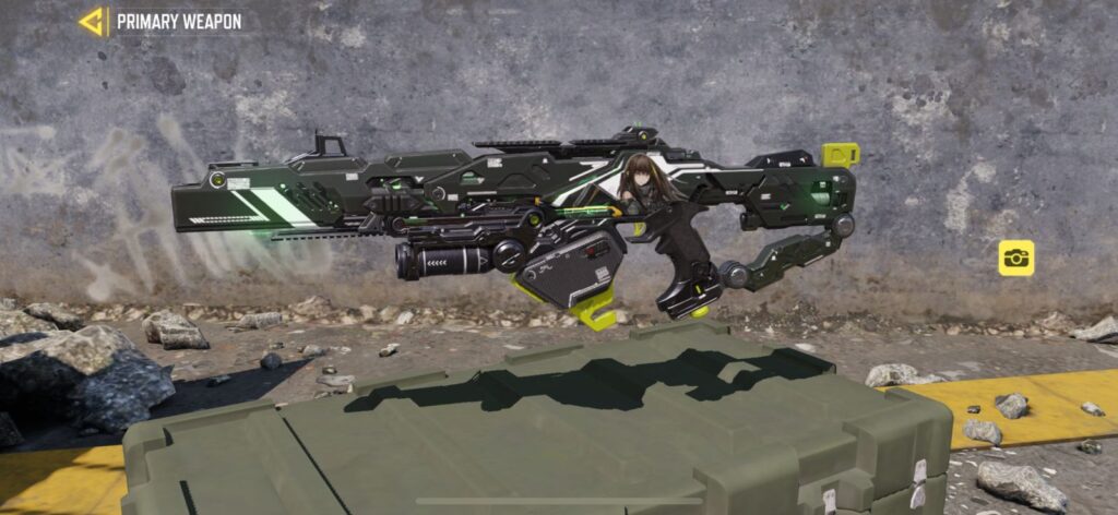 La M4: Jupiter Cannon cuenta con un diseño espectacular, ideal para combates a media y larga distancia. La mira, limpia y en tonos verdes, contrasta con el fondo para identificar mejor los movimientos enemigos. El efecto de muerte es potente sin resultar molesto. Hay ligeros cambios en la skin según la racha de bajas y una animación de inspección digna de una mítica. Acompaña a la M4 nuestra querida Dusk: Otherworld Ensemble, una skin de operador con gran nivel de detalle que incluye una máscara removible, perfecta para Battle Royale; además, si eres fan del juego original, este personaje trae diálogos populares de Girls’ Frontline en su idioma.