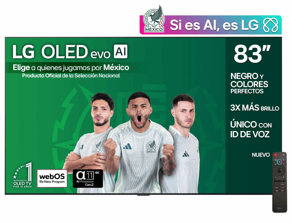 Con la campaña “Elige a quienes jugamos por México”, LG celebra el orgullo nacional. Su portafolio incluye pantallas OLED, refrigeradores, lavadoras y más. Todos los productos están pensados para quienes viven el fútbol con pasión y estilo.
